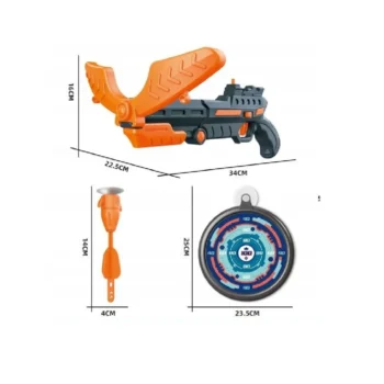Ten pomarańczowo-czerwony pistolet na strzały to doskonała zabawka dla małych strzelców i strzelczyń, którzy chcą doskonalić swoje umiejętności celowania i rywalizować z przyjaciółmi. Pistolet działa na zasadzie łuku, co sprawia, że strzały mogą być precyzyjnie wystrzeliwane.