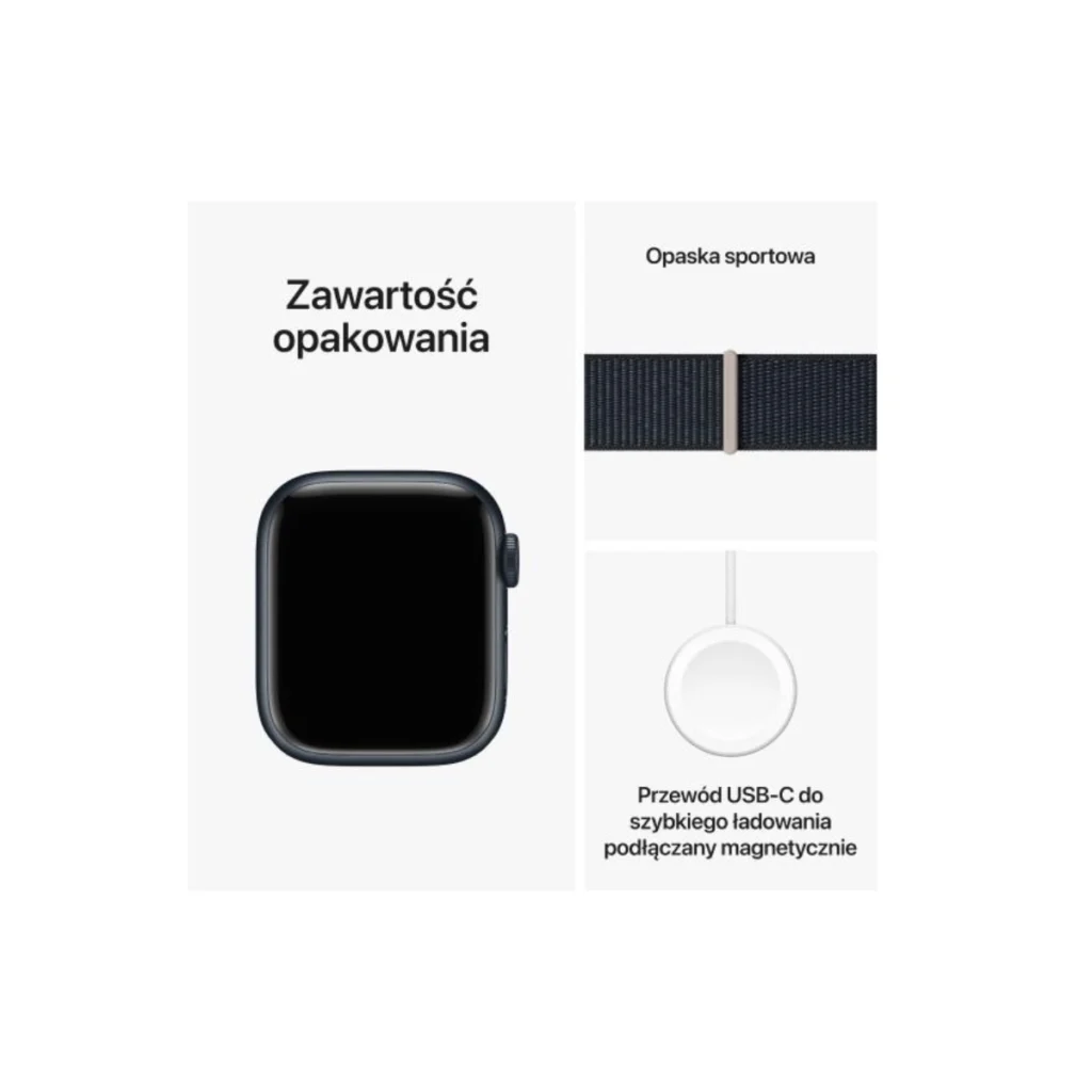 | Kompatybilność aplikacji: | Apple Watch Ultra 2, Apple Watch Series 9 i Apple Watch SE wymagają iPhone’a Xs lub nowszego z systemem iOS 17 lub nowszym. |
