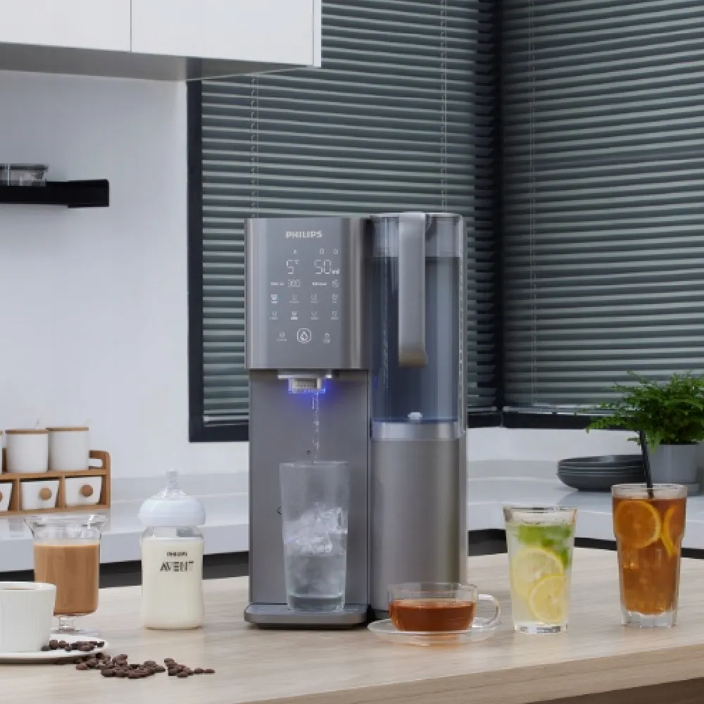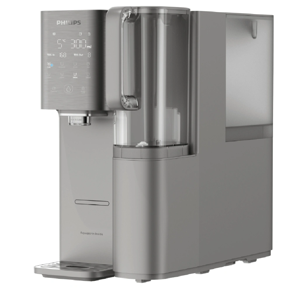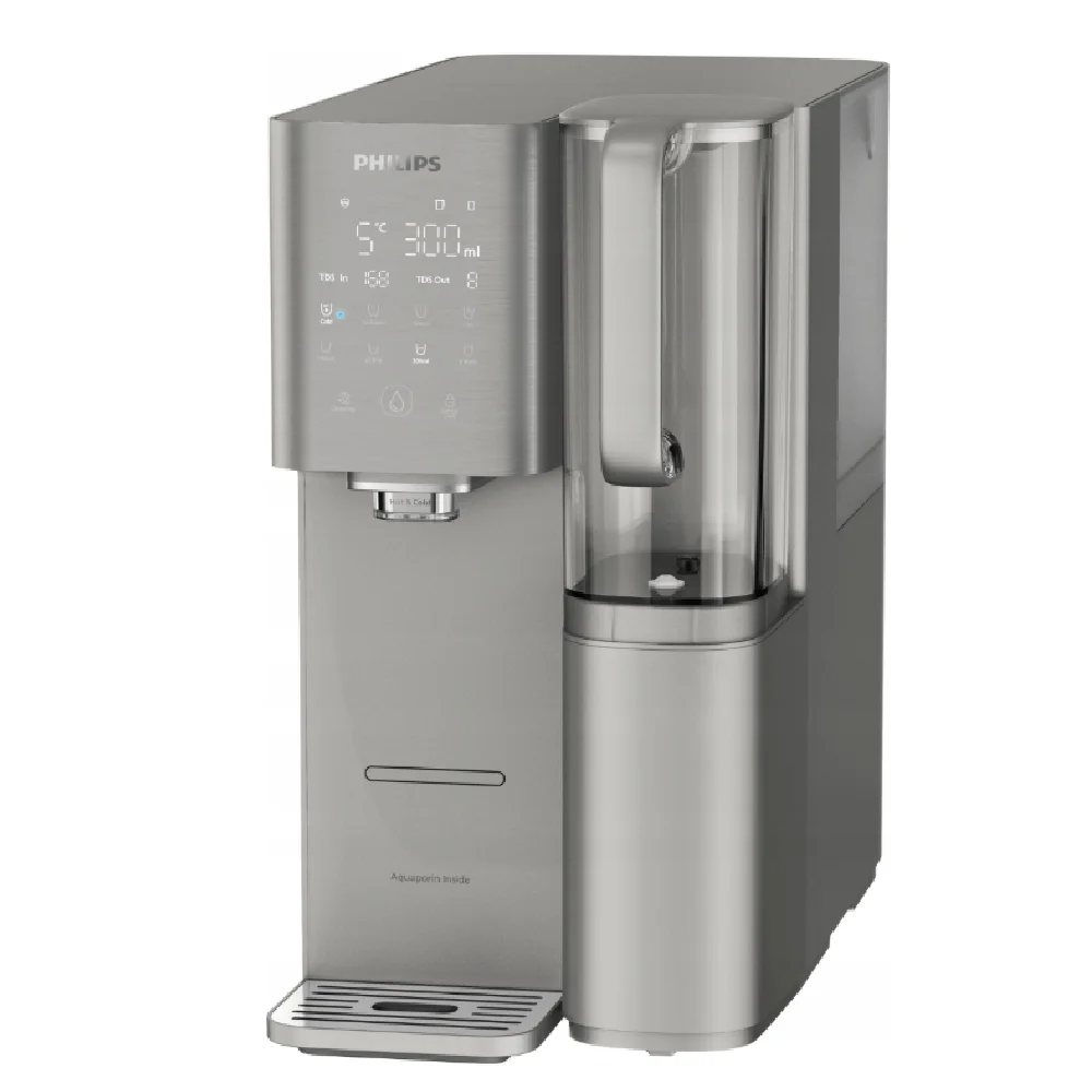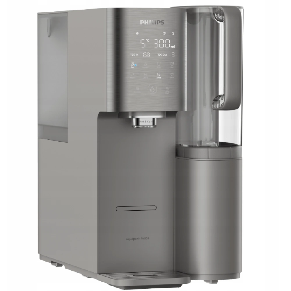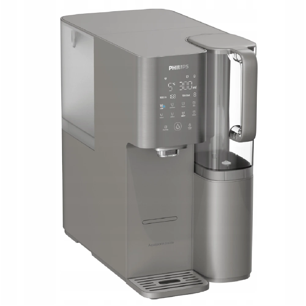 PHILIPS ADD6921DG to nowoczesny dystrybutor wody, który zadba o zdrowie Twoje i Twojej rodziny. Dzięki zaawansowanej technologii odwróconej osmozy i systemowi sterylizacji UV-C LED, dostarcza czystą, zdrową wodę w sześciu poziomach temperatury – od lodowatej po wrzącą. Koniec z plastikowymi butelkami, teraz masz świeżą wodę w każdej chwili, bez potrzeby podłączania do sieci wodociągowej.