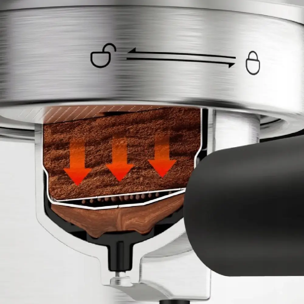 Ten kompaktowy ekspres kolbowy to połączenie wysokiego ciśnienia, stabilnej temperatury i wygody użytkowania.