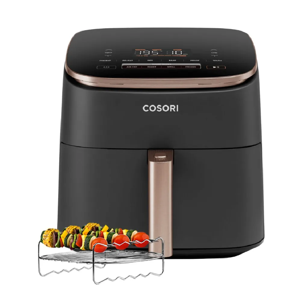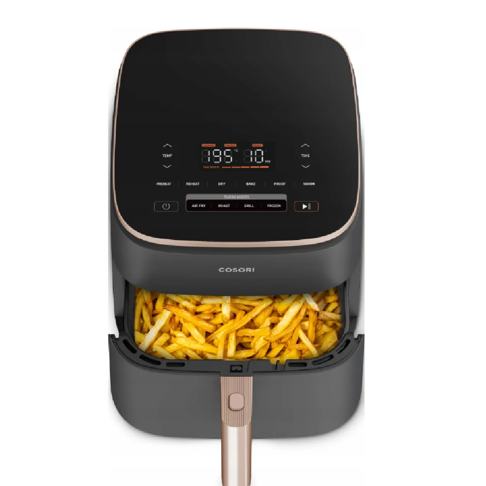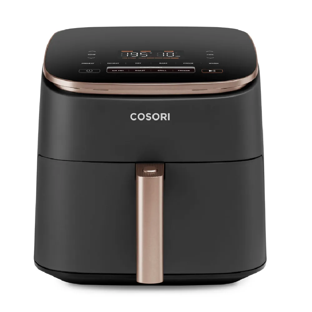 Nowoczesna COSORI Air Fryer TurboBlaze CAF-DC601-KEU to zaawansowana frytkownica beztłuszczowa nowej generacji, która pozwala przygotowywać smaczne i chrupiące potrawy z minimalną ilością tłuszczu. Dzięki innowacyjnemu systemowi przepływu powietrza oraz wydajnemu silnikowi DC urządzenie zapewnia szybsze, zdrowsze i bardziej precyzyjne gotowanie.