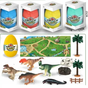 Piękne jajo dinozaura w różnych kolorach z figurkami dinozaurów dla dzieci: