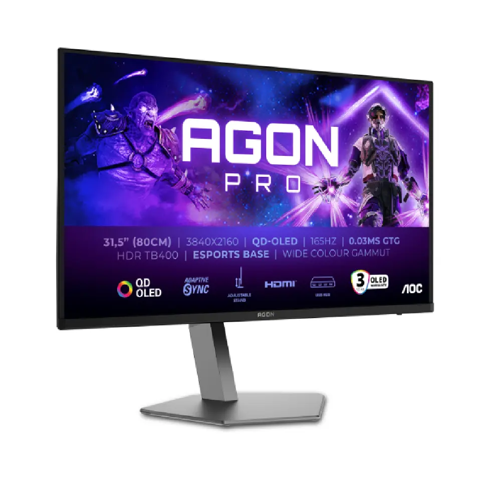 Monitor AOC AGON PRO QD-OLED AG326UD to 31,5-calowy ekran UHD (3840×2160) wyposażony w zaawansowaną technologię panelu QD-OLED, która oferuje głębokie czernie, żywe kolory i szeroką paletę barw. Dzięki technologii szerokiej gamy kolorów i certyfikatowi VESA DisplayHDR™ True Black 400, monitor dostarcza realistyczne efekty HDR i doskonałą jakość obrazu, idealną do gier i filmów.