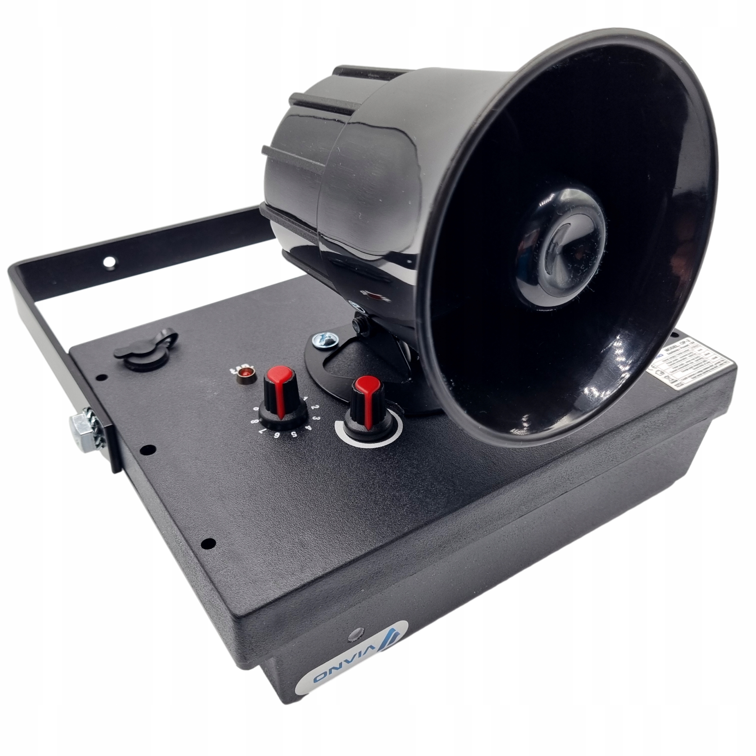 - Głośność pracy urządzenia można samodzielnie dostosować do chronionego obszaru (służy do tego zabudowany w urządzeniu potencjometr). Płynna regulacja dźwięku od 0 do 100%.