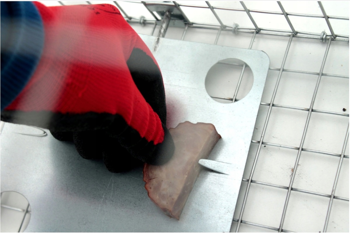 Przy poruszeniu przynęty klapy zamykają się błyskawicznie i blokują o ramę stalową – zwierzę nie ma szans ich otworzyć.