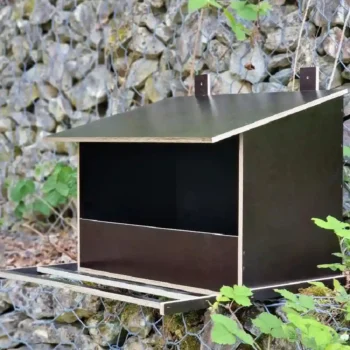 Wytrzymała budka lęgowa wykonana ze sklejki liściastej o grubości 12 mm.